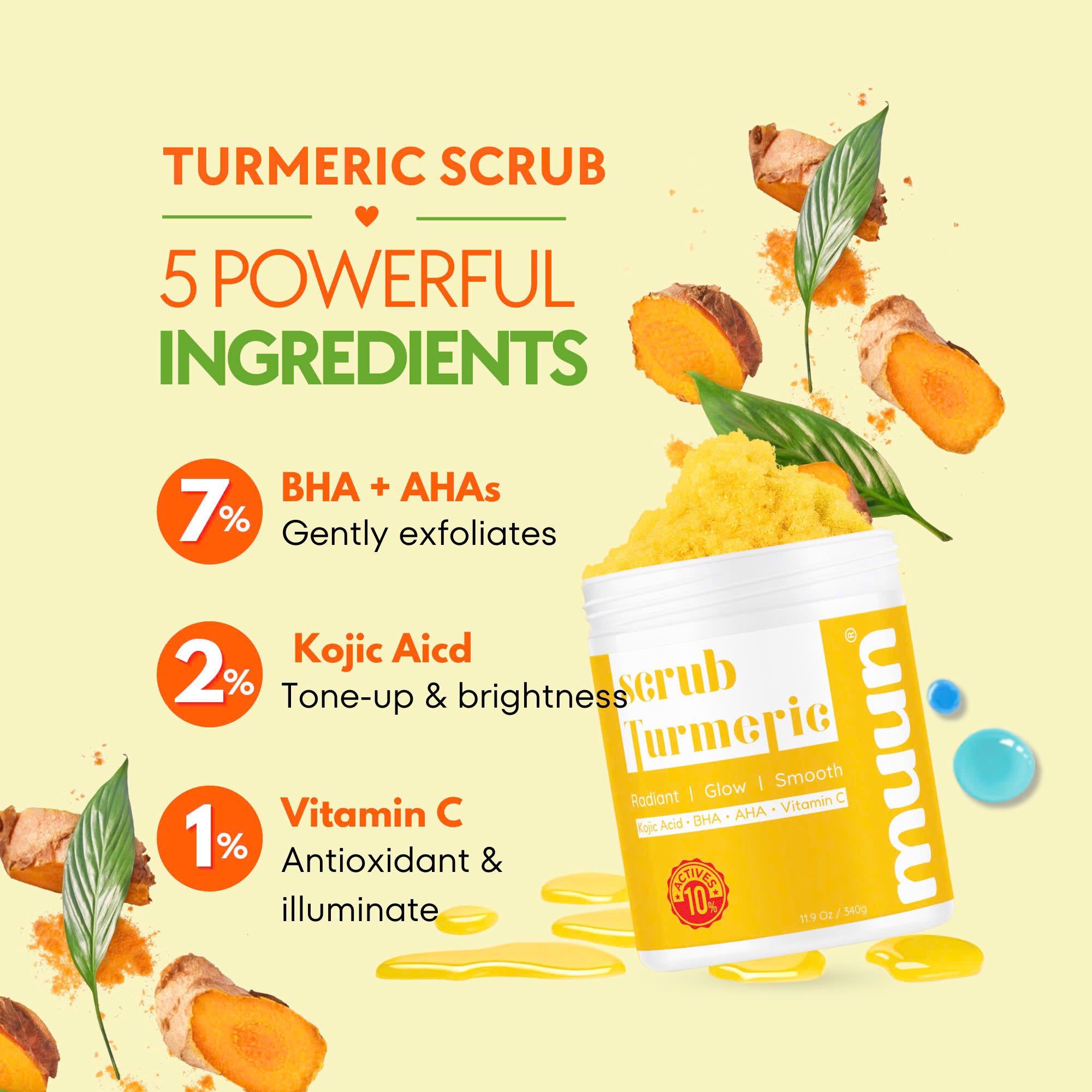 Muun Body Scrub - 2% Kojic Acid Turmeric Vitamin C & AHA/BHA