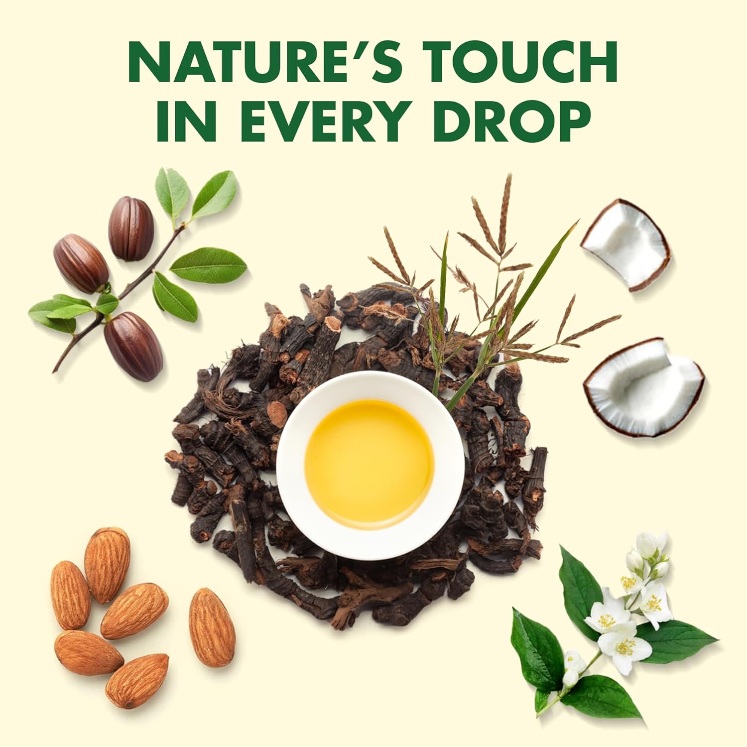 Cyperus Rotundus Oil, Jojoba Oil, Coconut Oil, Almond Oil, Vitamin E Oil