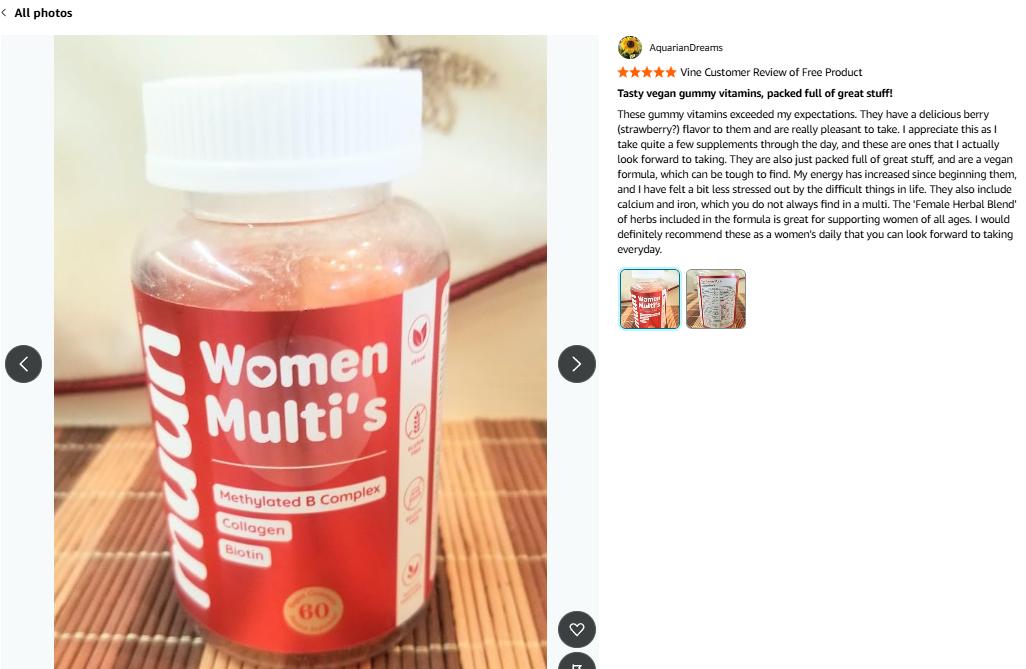 These gummy vitamins exceeded my expectations. They have a delicious berry (strawberry?) flavor to them and are really pleasant to take. I appreciate this as I take quite a few supplements through the day, and these are ones that I actually look forward to taking. They are also just packed full of great stuff, and are a vegan formula, which can be tough to find. My energy has increased since beginning them, and I have felt a bit less stressed out by the difficult things in life. They also include calcium and iron, which you do not always find in a multi. The 'Female Herbal Blend' of herbs included in the formula is great for supporting women of all ages. I would definitely recommend these as a women's daily that you can look forward to taking everyday.