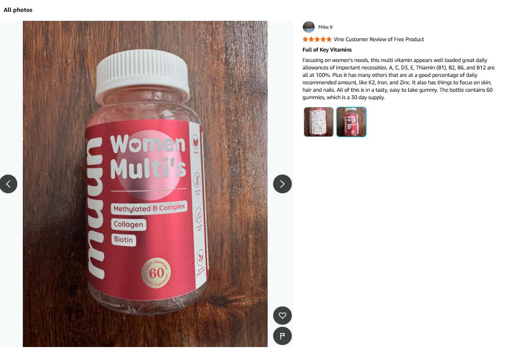 Focusing on womenβs needs, this multi vitamin appears well loaded great daily allowances of important necessities. A, C, D3, E, Thiamin (B1), B2, B6, and B12 are all at 100%. Plus it has many others that are at a good percentage of daily recommended amount, like K2, Iron, and Zinc. It also has things to focus on skin, hair and nails. All of this is in a tasty, easy to take gummy. The bottle contains 60 gummies, which is a 30 day supply.