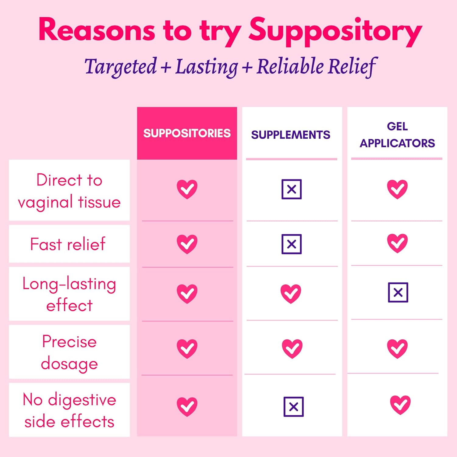 - π§[π πππ ππππππππ, π ππ πππππππππ ππππ πππ] Vaginal suppositories for women provide deep hydration to dry tissue, relieving itching, burning & discomfort caused by estrogen decline in menopausal women.